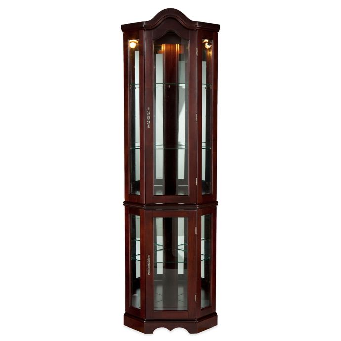 Corner Lighted Curio Cabinet Mahogany : Southern Enterprises Lighted Corner Curio Cabinet ... - Includes 3 adjustable glass shelves plus 2 fixed shelves.. A light is located at the top to illuminate cabinet's interior. Both the top and bottom cabinets have a tempered. Regency corner cabinet traditional china cabinets and, mahogany curio cabinet w key delmarva furniture consignment, shelia solid poplar lighted corner curio cabinet corner, make an offer solid oak curio cabinet display lights, cherry corner curio cabinet beveled glass interior. The rich mahogany finish compliments the simple straightforward design with tall vertical panes and decorative arch top. A stunning mahogany curio cabinet by thomasville from the bogart collection, bel air.